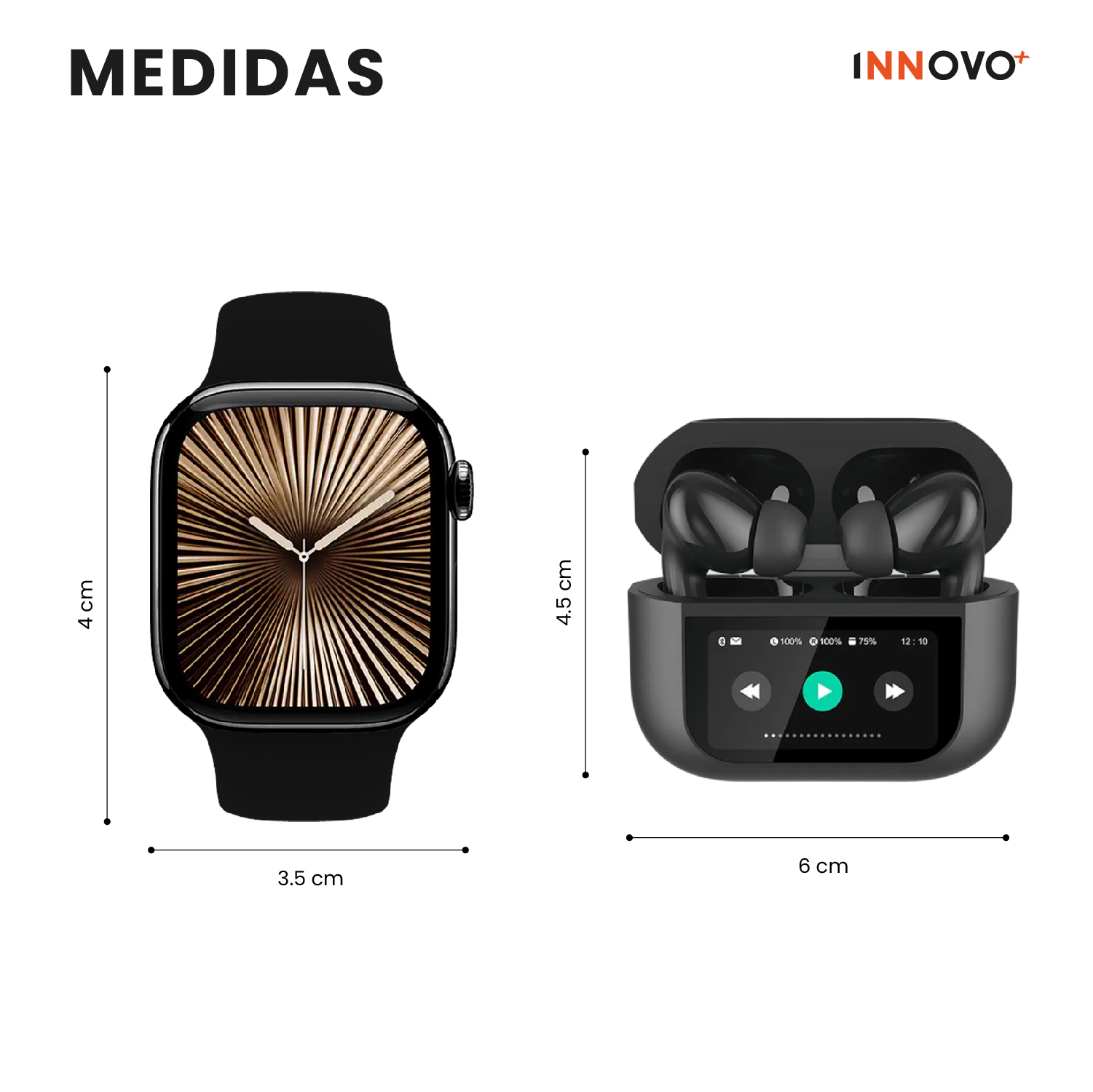 Dimensiones del Reloj: Pantalla de $4.5 text{ cm} times 4 text{ cm}$ para una lectura cómoda.