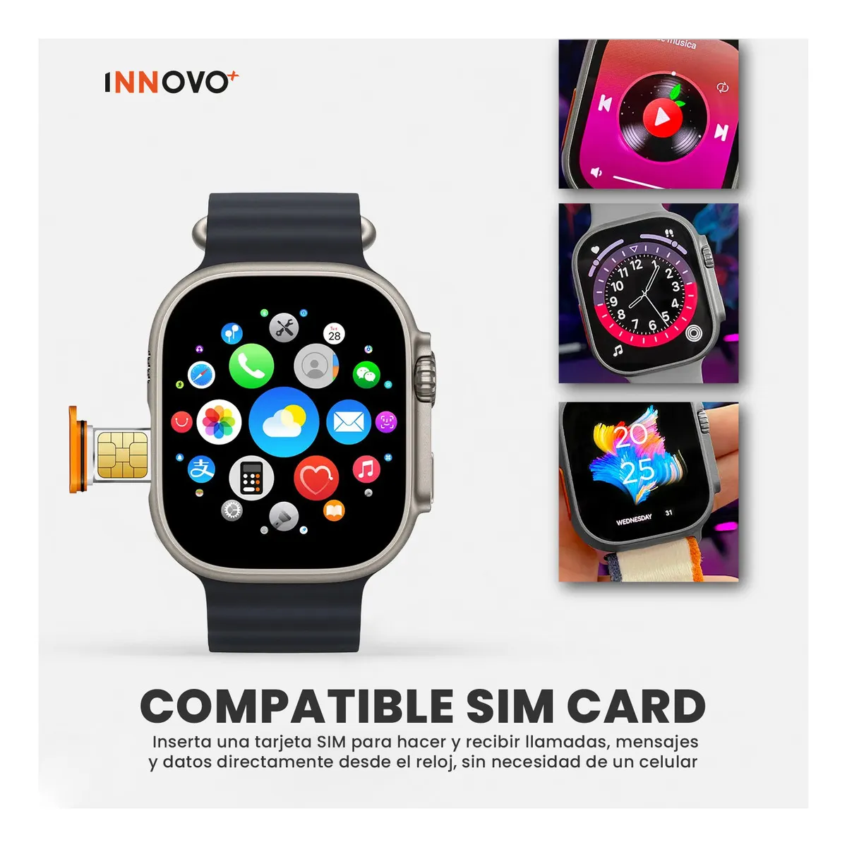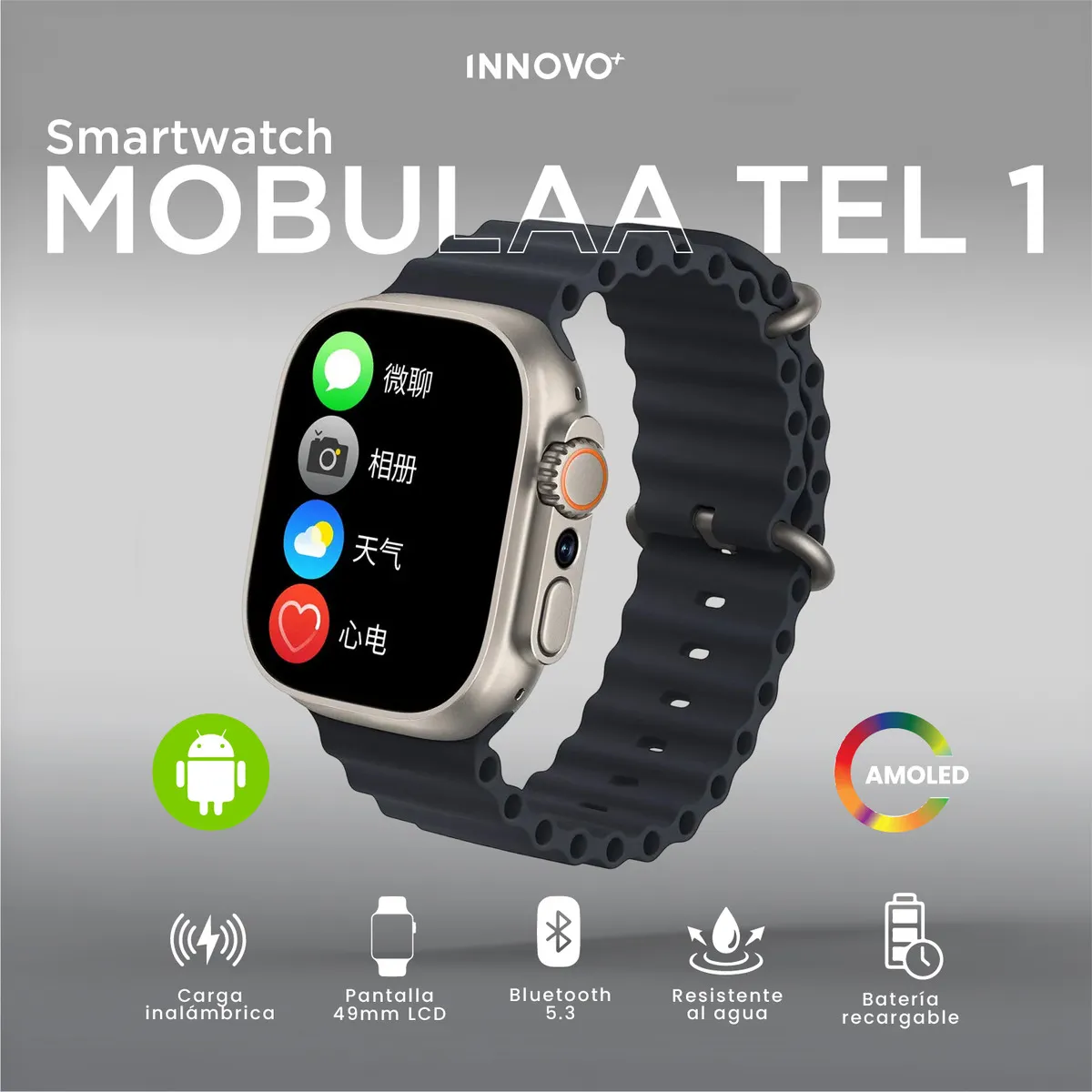 Lleva tu día al siguiente nivel con el Smartwatch MOBULAA TEL 1 Innovo+, el reloj inteligente que combina SIM Card, pantalla grande 49 mm, Bluetooth 5.3, modo deportivo, monitor de salud, carga inalámbrica, y un diseño moderno con 3 correas premium.