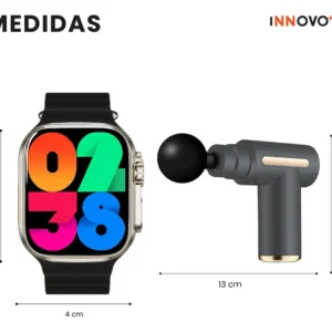 ¿Buscas el equilibrio perfecto entre tecnología, monitoreo y bienestar? El Combo Max ha sido diseñado para quienes no se conforman. Obtén el Smartwatch TK-89 Max, tu asistente personal de salud, junto a la potente Pistola Masajeadora, la herramienta definitiva para la recuperación muscular.