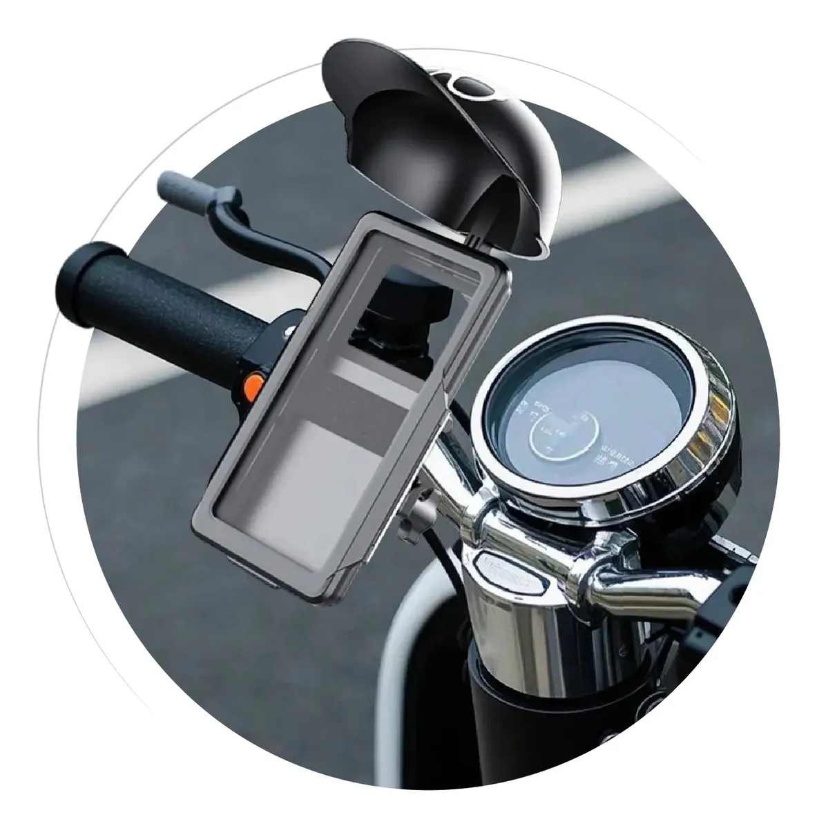 Presentamos el Soporte Premium con Visera Integrada, el accesorio definitivo para quienes viven sobre dos ruedas. No es solo un soporte; es un «traje de protección» completo para tu smartphone. Gracias a su diseño único con mini casco aerodinámico, tu pantalla siempre estará a la sombra, eliminando reflejos molestos y evitando que tu equipo se sobrecaliente en días intensos.