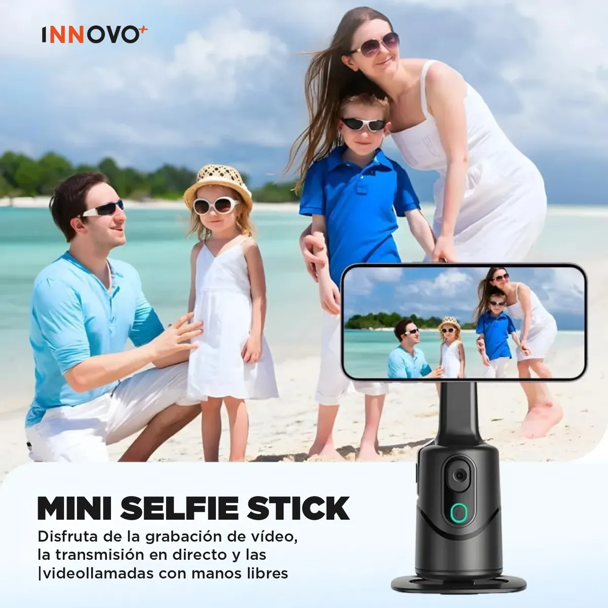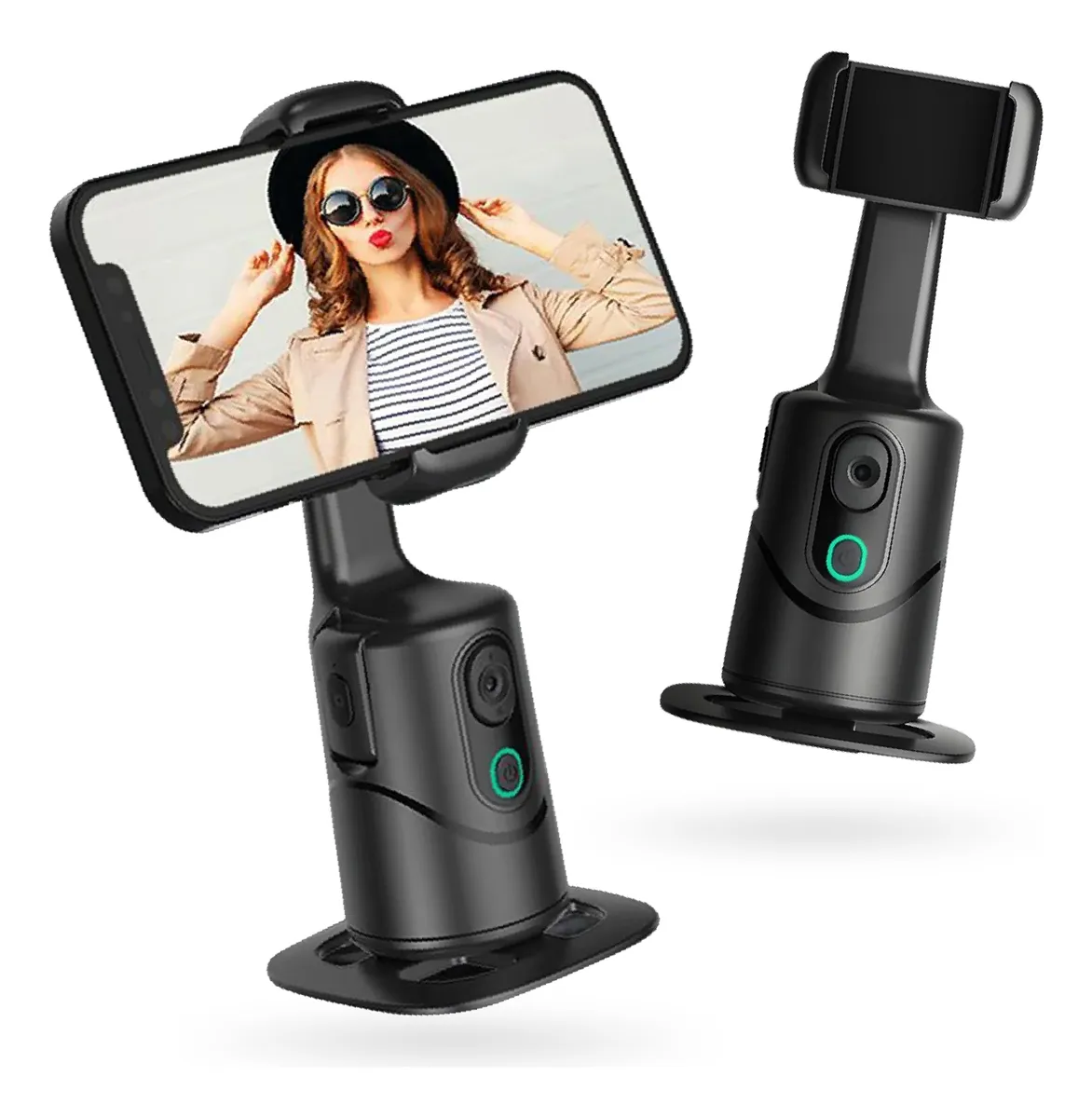 Este increíble soporte selfie inteligente con IA y giro automático 360° sigue tus movimientos en tiempo real, manteniendo tu rostro siempre centrado y enfocado, sin importar hacia dónde te muevas.