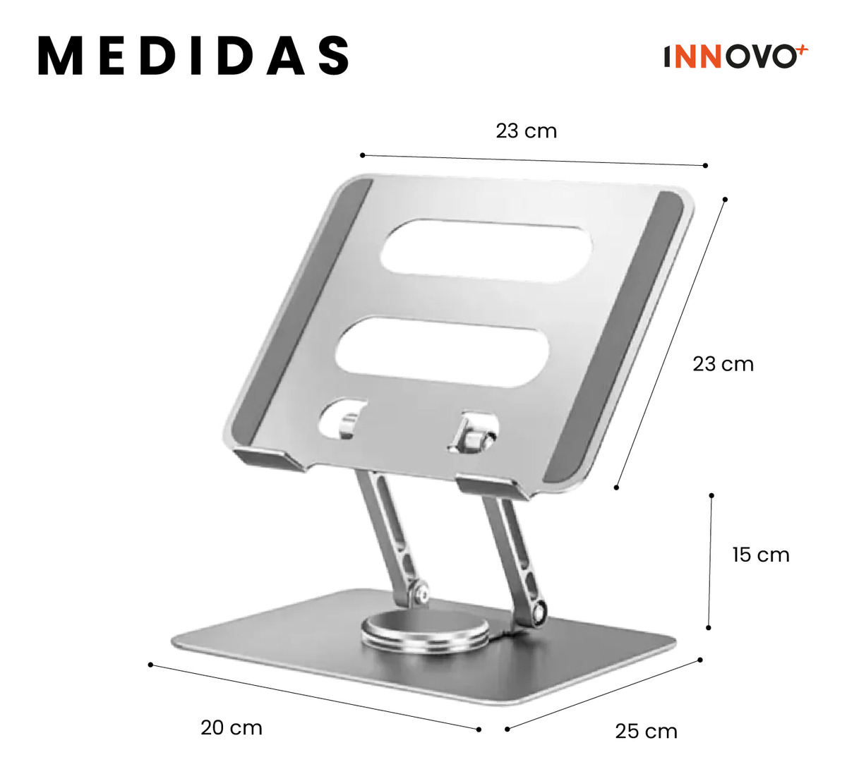 Mejora tu postura, comodidad y productividad con este soporte giratorio 360° para portátil, fabricado en resistente aluminio de alta calidad. Su diseño ergonómico y ajustable te permite trabajar con una mejor visual, reducir la fatiga cervical y mantener tu equipo siempre ventilado.