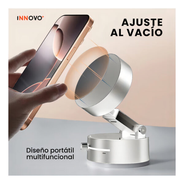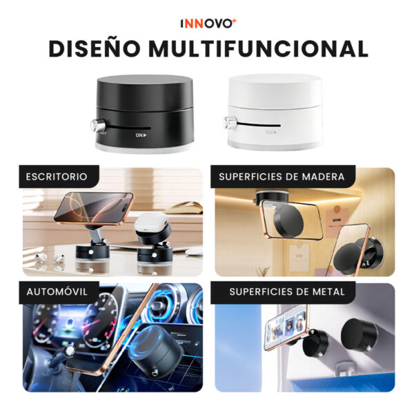 Mantén tu celular o tablet seguro, estable y siempre a la vista con el soporte magnético Innovo+, ideal para el hogar, la oficina, el coche o cualquier superficie. Su diseño compacto, portátil y ajustable lo convierte en el aliado perfecto para el uso diario.
