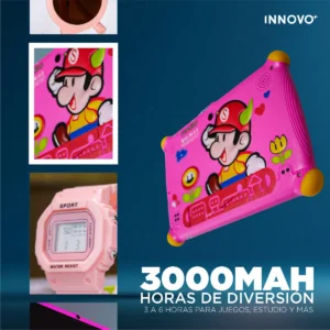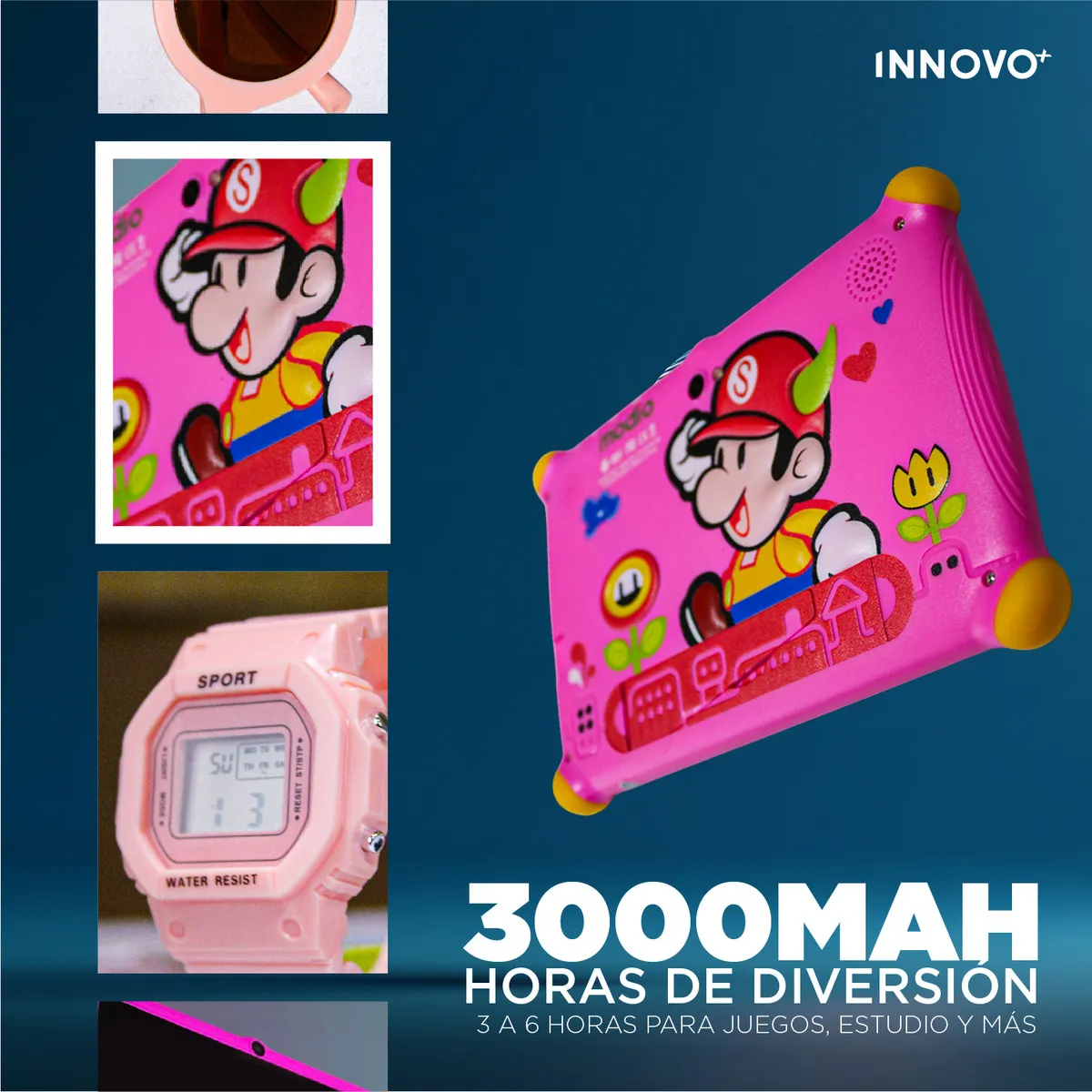 Además, integra WiFi 5.0, almacenamiento de 128GB, juegos educativos preinstalados, control parental y una batería de 3000mAh que ofrece 3 a 6 horas continuas de uso.