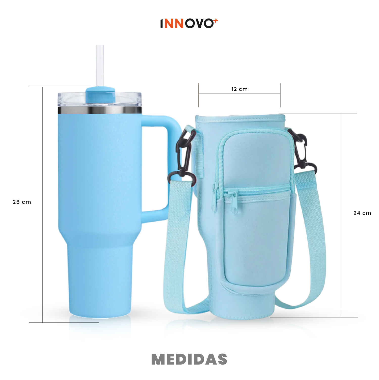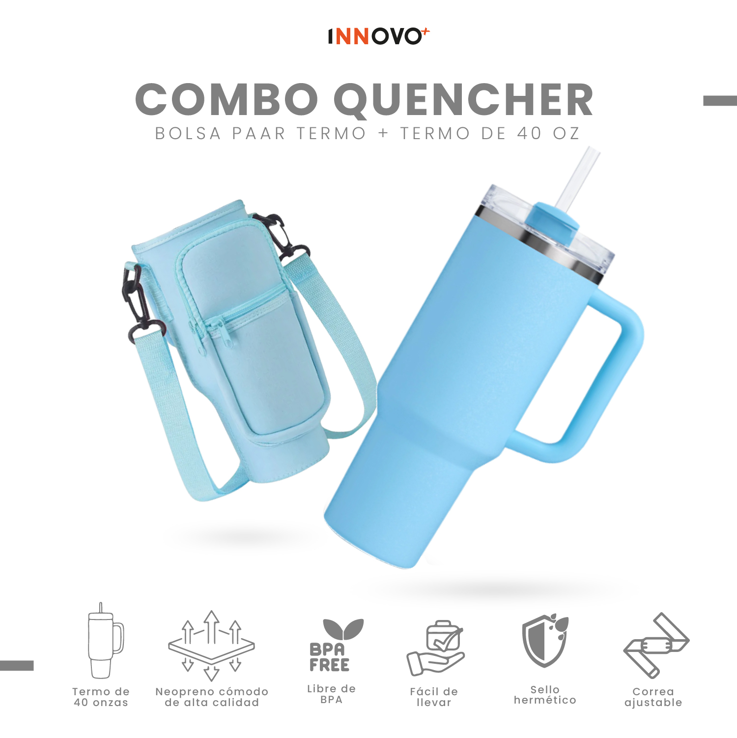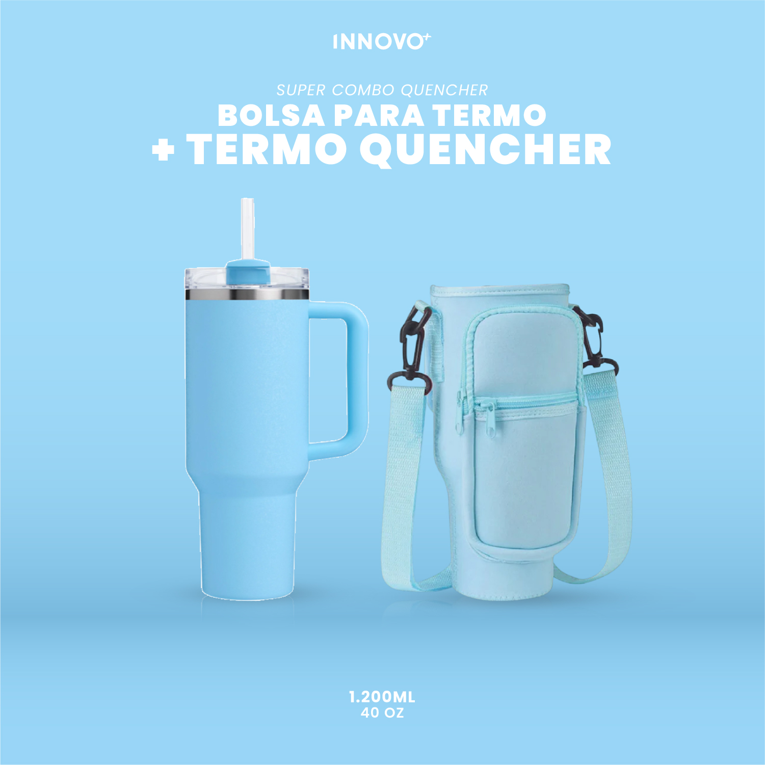 Termo Acero Inoxidable Con Funda Bolso Porta Termo Correa Ajustable Azul