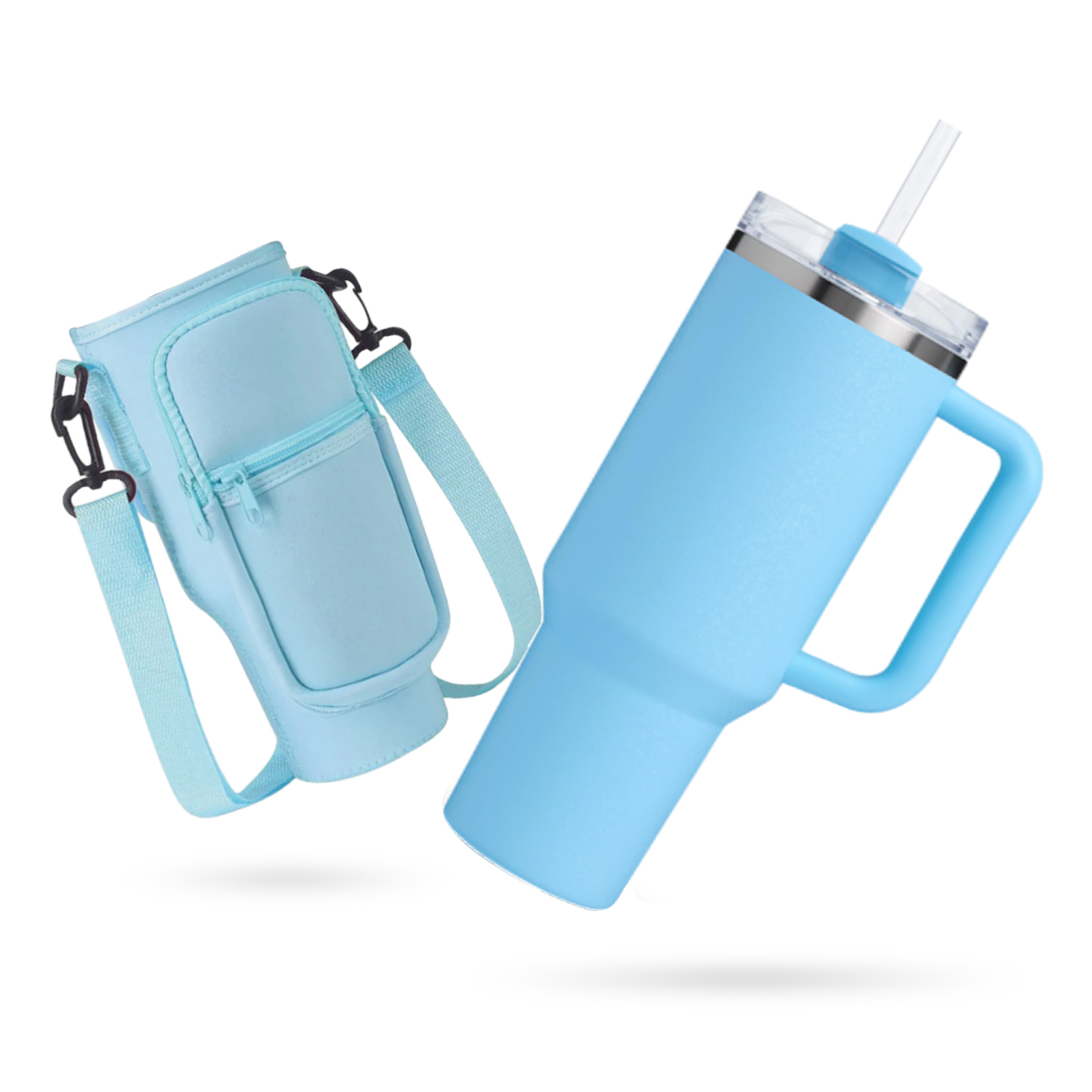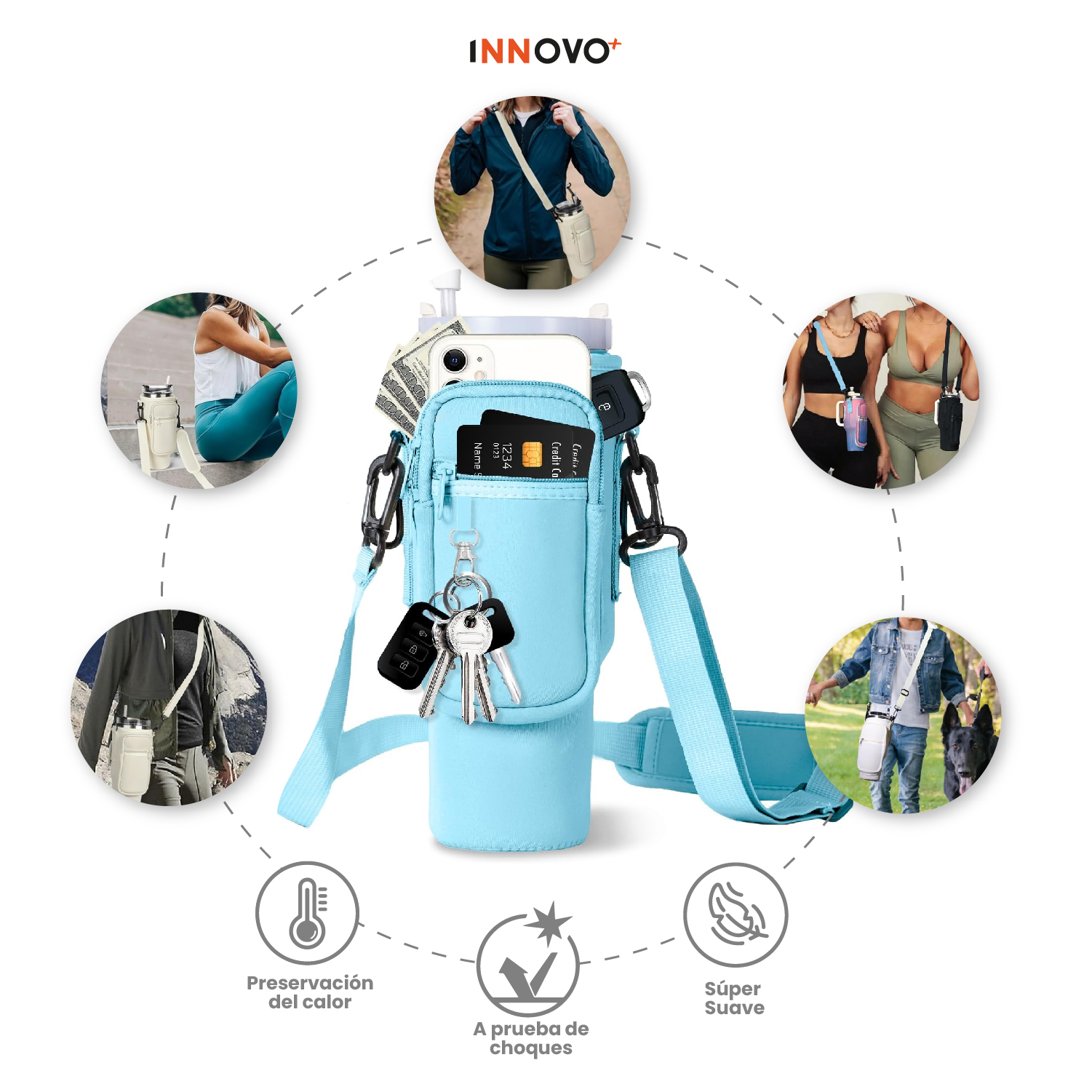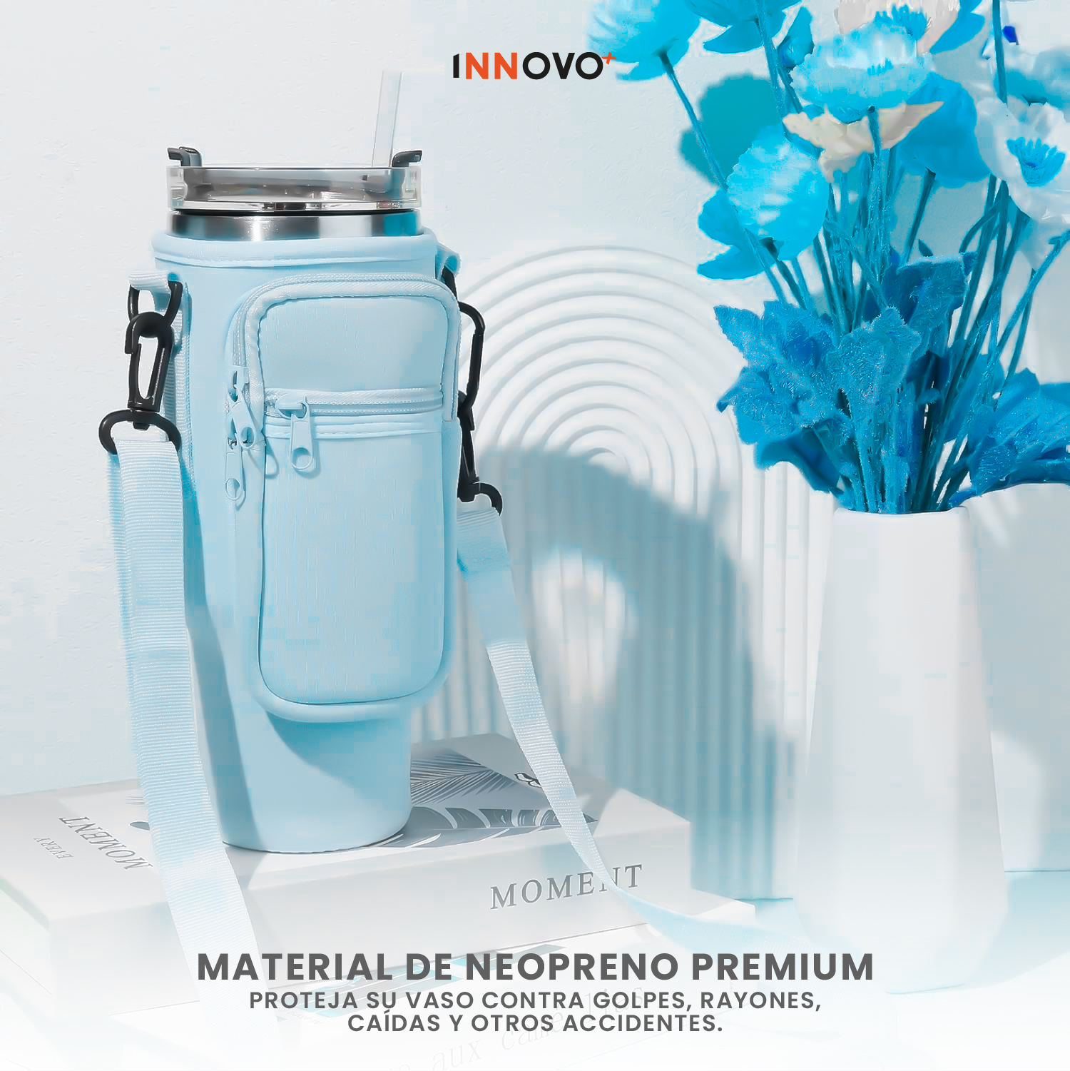 Termo Acero Inoxidable Con Funda Bolso Porta Termo Correa Ajustable Azul
