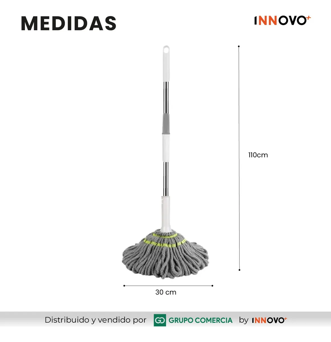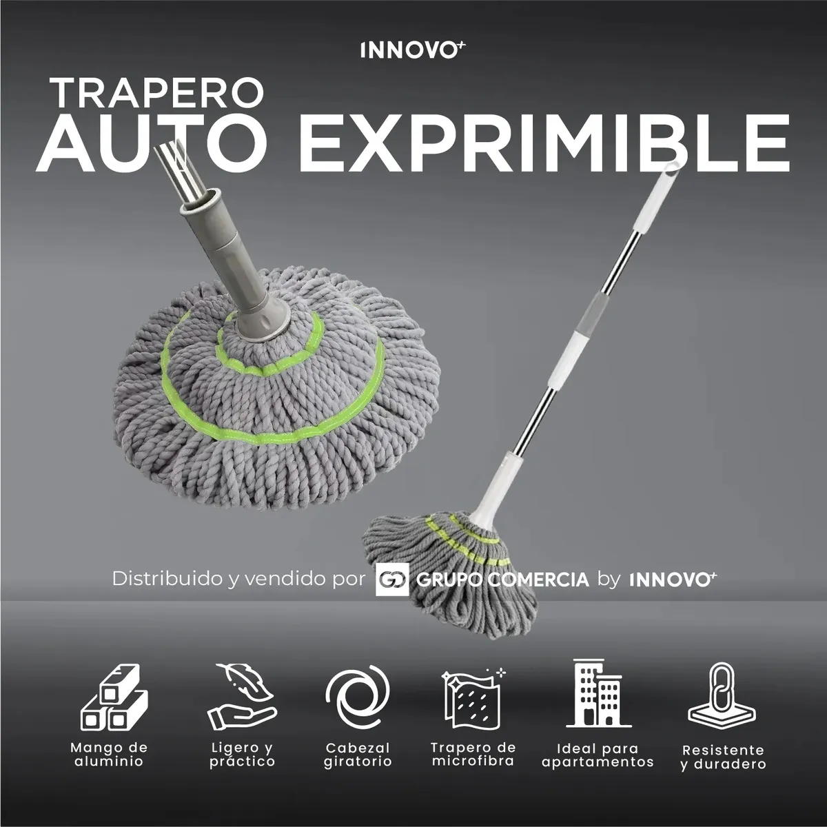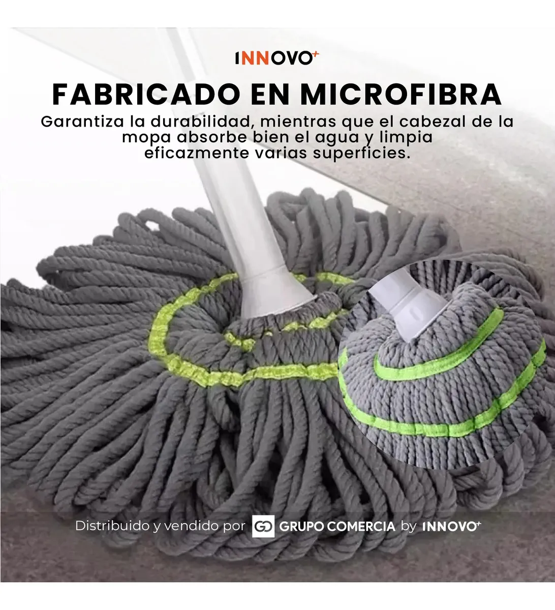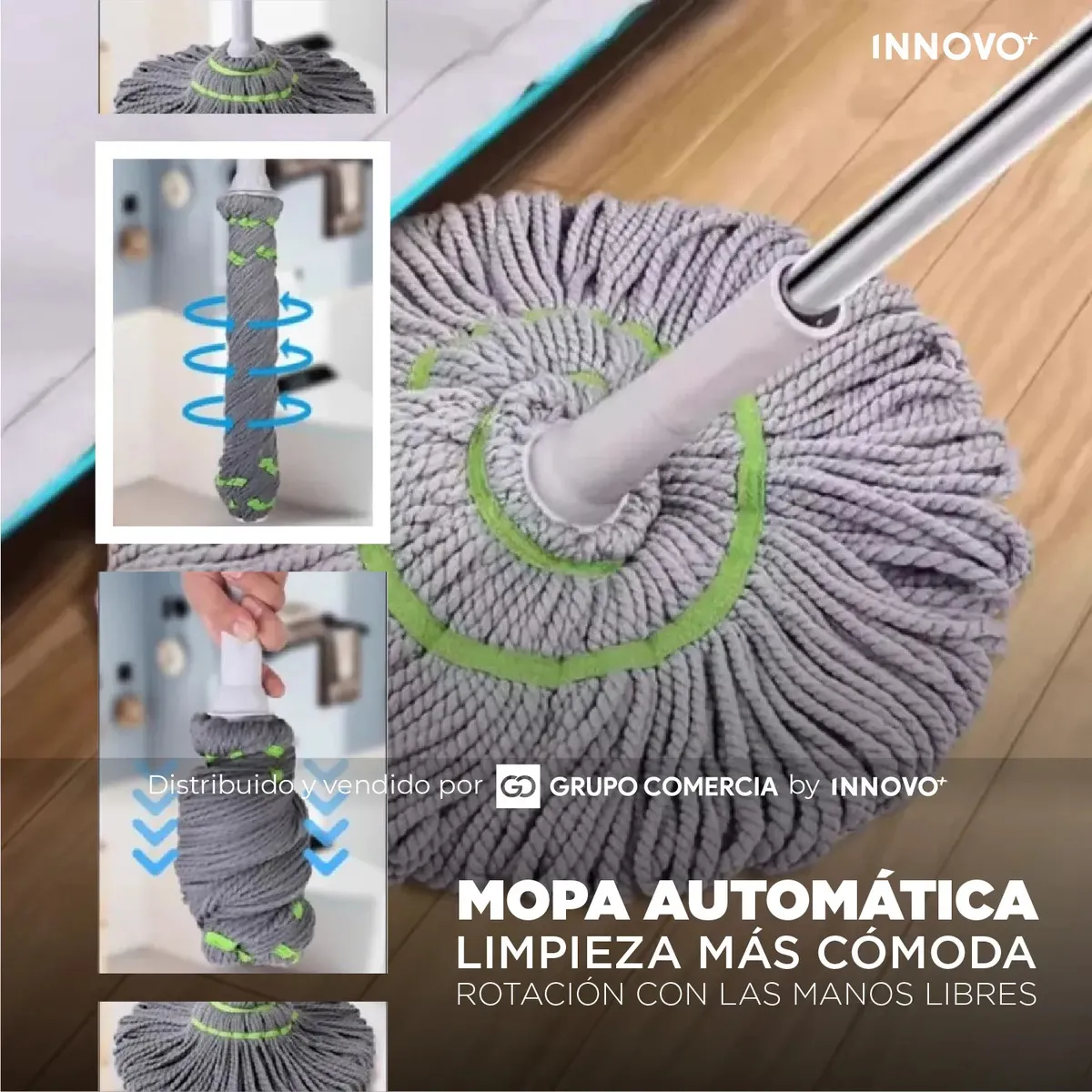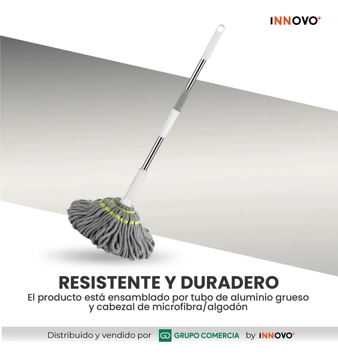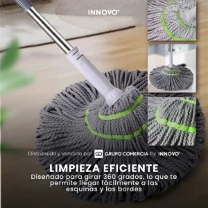 Limpia tu hogar en la mitad del tiempo con el nuevo Trapero Autoexprimible Innovo+. Diseñado para quienes buscan eficiencia, higiene y durabilidad en un solo producto. Su sistema de rotación avanzada te permite secar la mopa sin tocar el agua sucia, manteniendo tus manos impecables y protegidas.