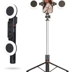 Iluminación Dual Integrada: Olvida cargar pesados aros de luz. Incluye dos potentes luces LED laterales que eliminan sombras en el rostro, resaltan tus rasgos y dan ese brillo profesional a tus ojos.
