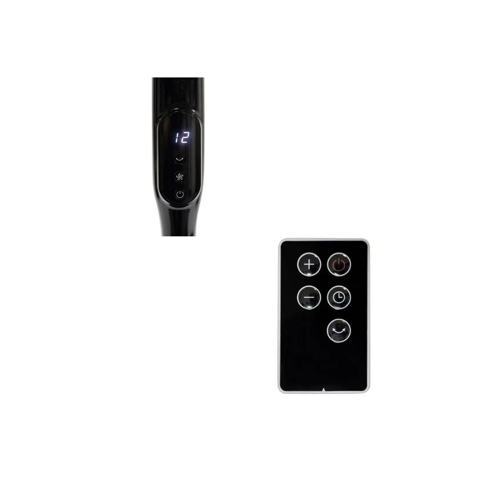 Su diseño elegante en color negro, con base estable y altura regulable, lo hace perfecto para dormitorios, salas u oficinas. Además, cuenta con control remoto, temporizador y múltiples niveles de velocidad para brindarte la mayor comodidad.