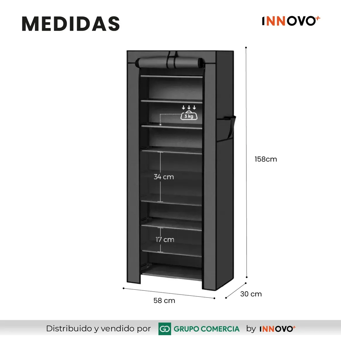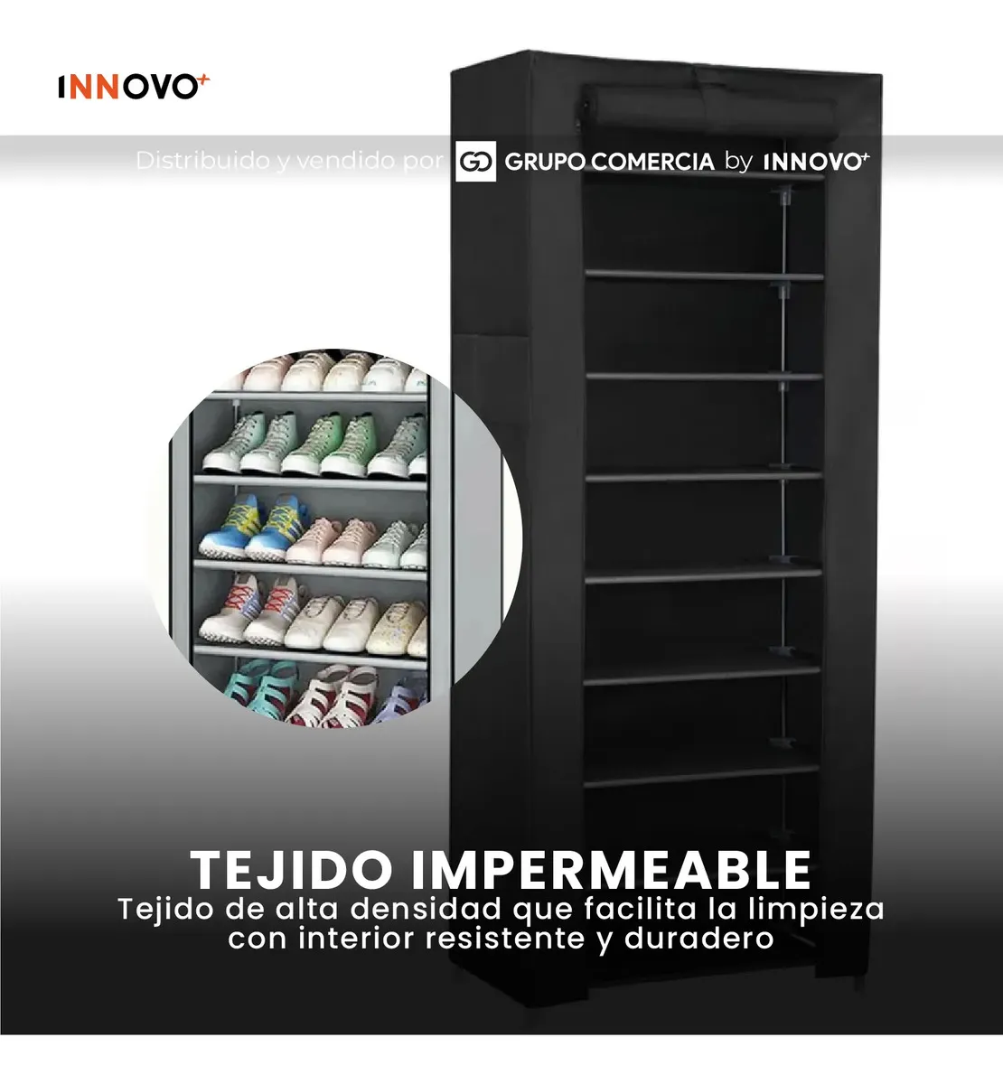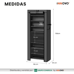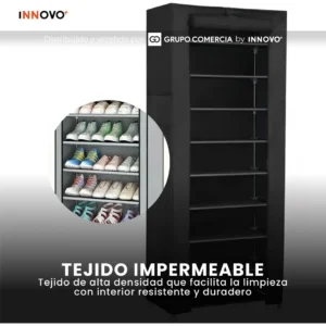 A diferencia de los estantes abiertos, este modelo incluye una funda de tela de alta densidad que repele el agua y el polvo.